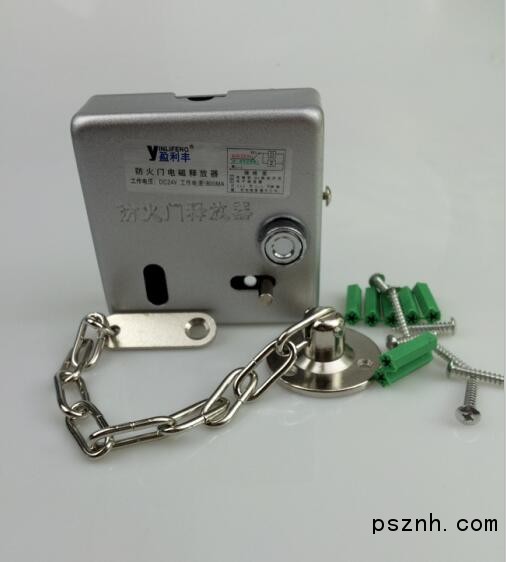 通电型电磁释放器,是一种与普通闭门器搭配使用的释放器,使防火门保持常开状态。发生火灾时,在消防联运控制下,其自动脱口释放,防火门在普通闭门器的作用下自动关门。本品须手动插拉扣,手动拉杆经行复位。安装注意事项:安装完成后,拉片与插片必须垂直,不能歪曲。